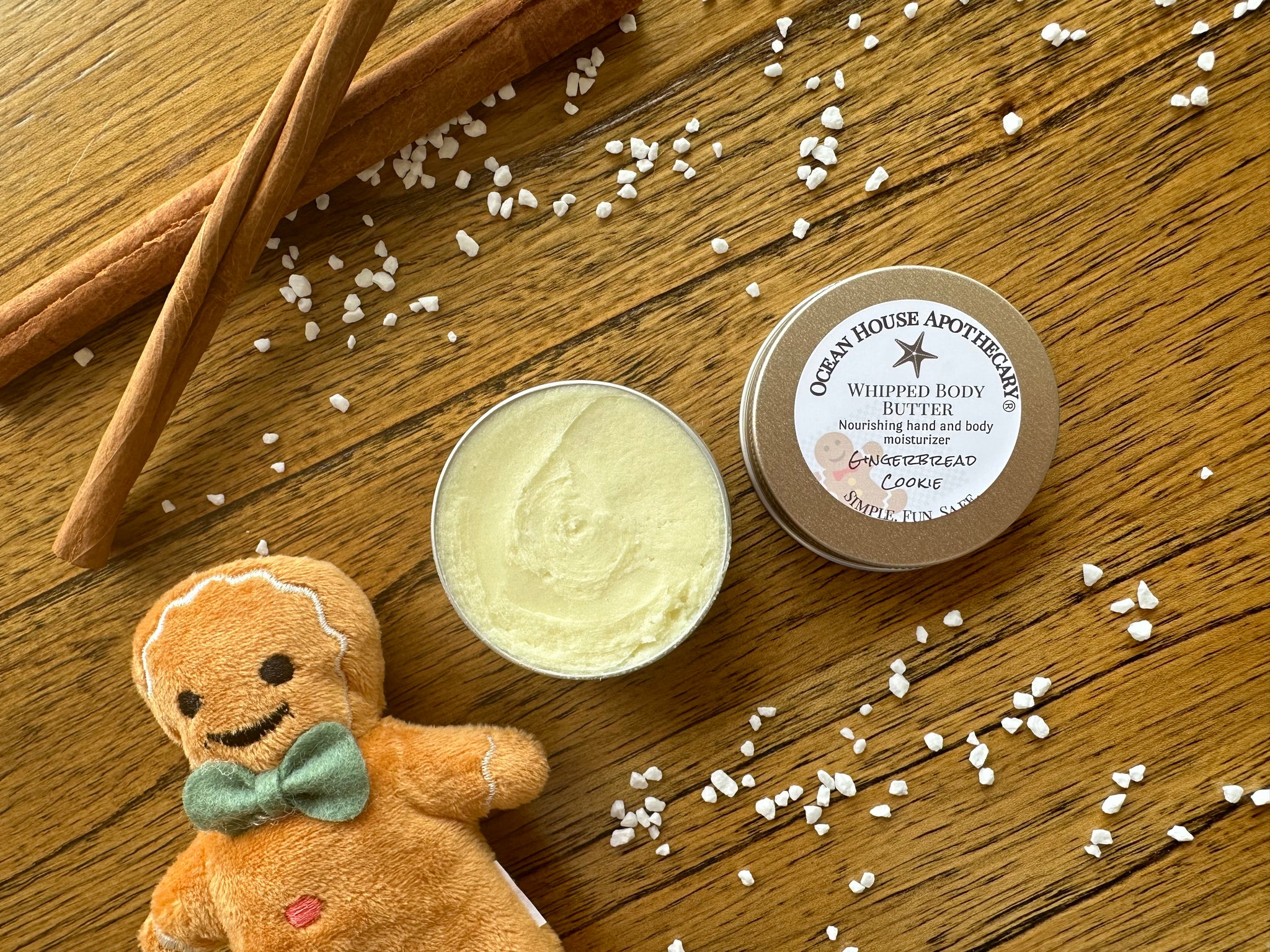Feed your skin the vitamins and nutrients it needs while delighting your senses with our limited edition Gingerbread Cookie Whipped Body Butter! Skin-loving ingredients like shea butter, coconut oil, grapeseed oil and aloe extract soothe and deeply nourish skin while a yummy blend of pure essential oils that smells just like real gingerbread provides seasonal comfort and warmth. Whipped to perfection, our body butter absorbs quickly without feeling sticky or greasy. This skin treat also makes a wonderful gift!